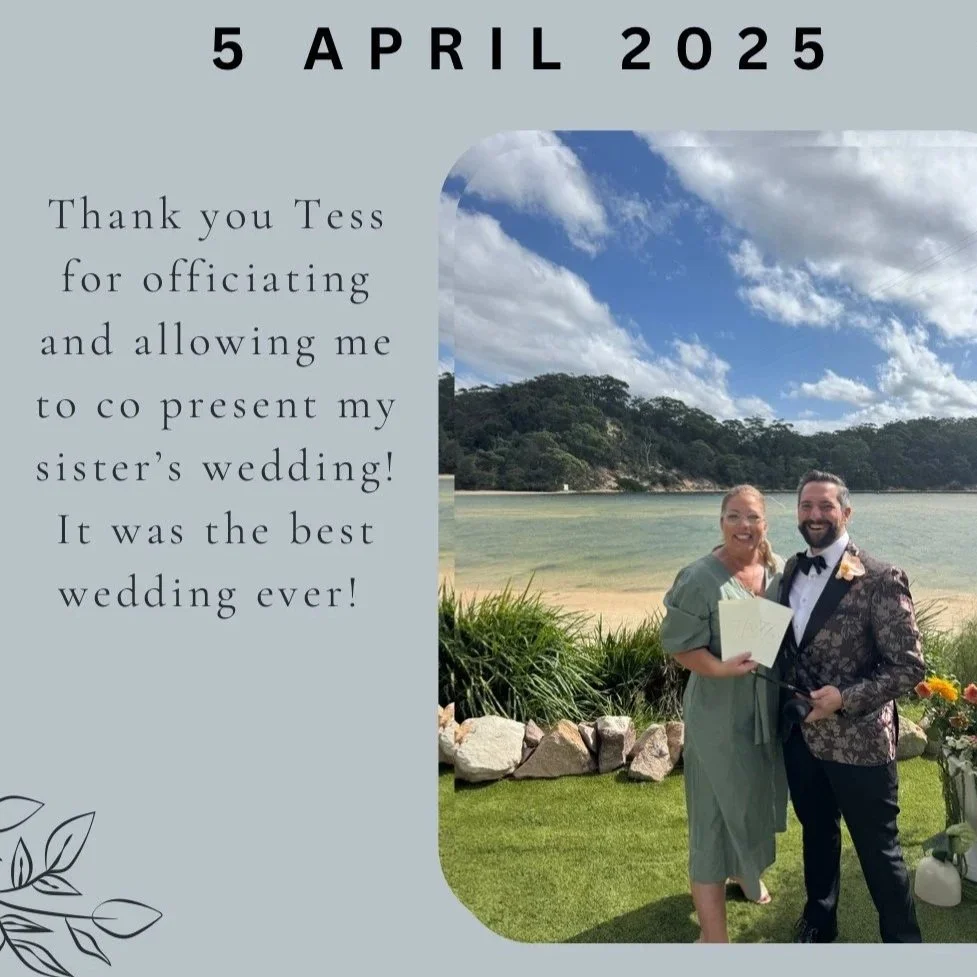 ❤️💕Words truly cannot express the depth of my gratitude for Tess from Southern Charm Celebrants, who beautifully united my husband and me on our special day. From the moment we began planning, Tess and her husband, Phil, showcased incredible organization and dedication, ensuring that every detail was thoughtfully managed and that our ceremony went off without a hitch.